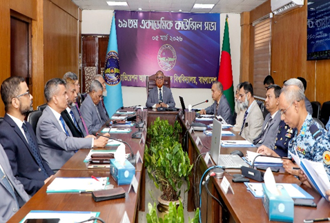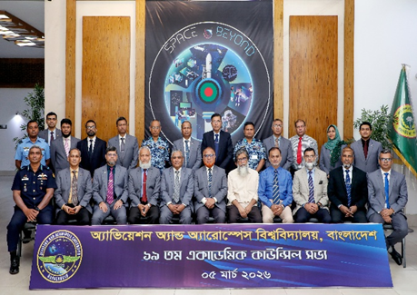 1. The 19th Academic Council Meeting of Aviation and Aerospace University, Bangladesh (AAUB) was held on 05 March 2026 at the university's conference room, Dhaka campus. The meeting was presided over by the respected Vice Chancellor of AAUB, Air Vice Marshal M Mustafizur Rahman, BSP, GUP, nswc, afwc, psc, GD(P).